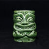 – Einzigartiges handgefertigtes Design – Ein lebendiger Tiki-Ausdruck mit filigranen Details und einer glatten grünen Glasur.